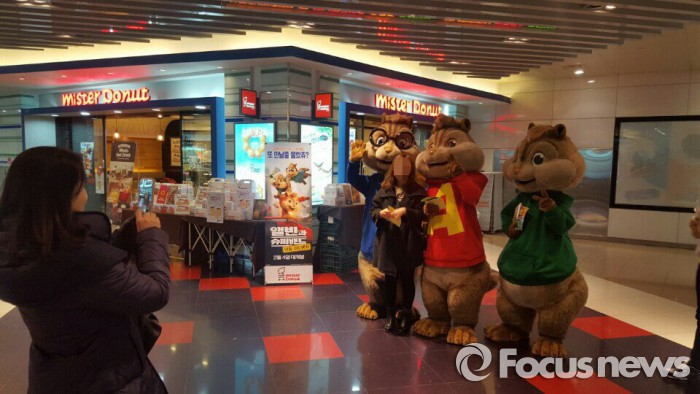 (서울=포커스뉴스) 미스터도넛은 강남역점‧정자2호점‧의정부 신세계점 등에서 애니메이션 영화 ‘앨빈과 슈퍼밴드: 악동 어드벤처’의 캐릭터 칩멍크 3형제와 사진을 찍는 이벤트를 지난 2일 진행했다.