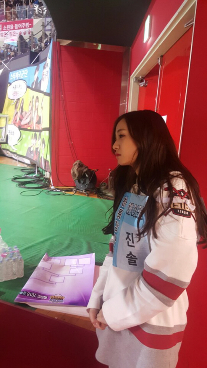 (서울=포커스뉴스) 그룹 에이프릴의 멤버 진솔의 MBC 예능 ‘2016 설특집 아이돌스타 육상.씨름.풋살.양궁 선수권대회’ (이하 아육대) 녹화 비하인드 사진이 공개됐다.