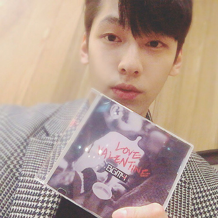 호익은 4일 오전 인스타그램을 통해 어쿠스틱 감성그룹 비지엠포(BGM4)와 함께한 '러브 발렌타인(Love Valentine)' 시디를 들고 있는 사진을 공개하며 신곡 홍보에 나섰다.