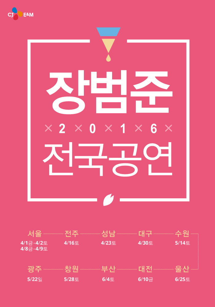 ‘2016 장범준 전국공연’를 주최/주관하는 CJ E&M 음악사업부문 측은 “2016년 봄 컴백 소식에 이어 전국투어 콘서트 개최까지 팬들의 기대에 부응할만한 무대로 보답하겠다”며 “ ‘사랑에 빠져요’라는 콘서트 타이틀처럼 남녀노소 모두 공감할 수 있는 따듯한 공연이 될 것”이라고 전했다.