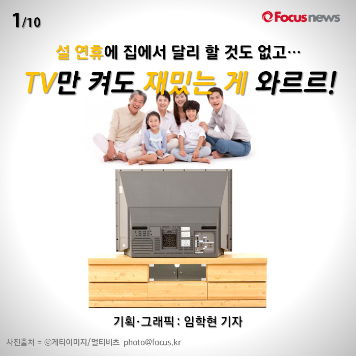 (서울=포커스뉴스) 설 연휴 때 집에 있는 게 심심할 것 같으신가요? 텔레비전 채널만 잘 돌리셔도 전혀 지루할 틈이 없습니다. 카드뉴스로 알려드리는 설 특선 프로그램 골라보기 꿀팁입니다.
