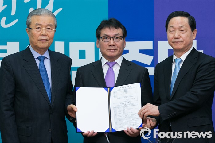 | △ 김종인·김상곤과 함께 선 서형수 |