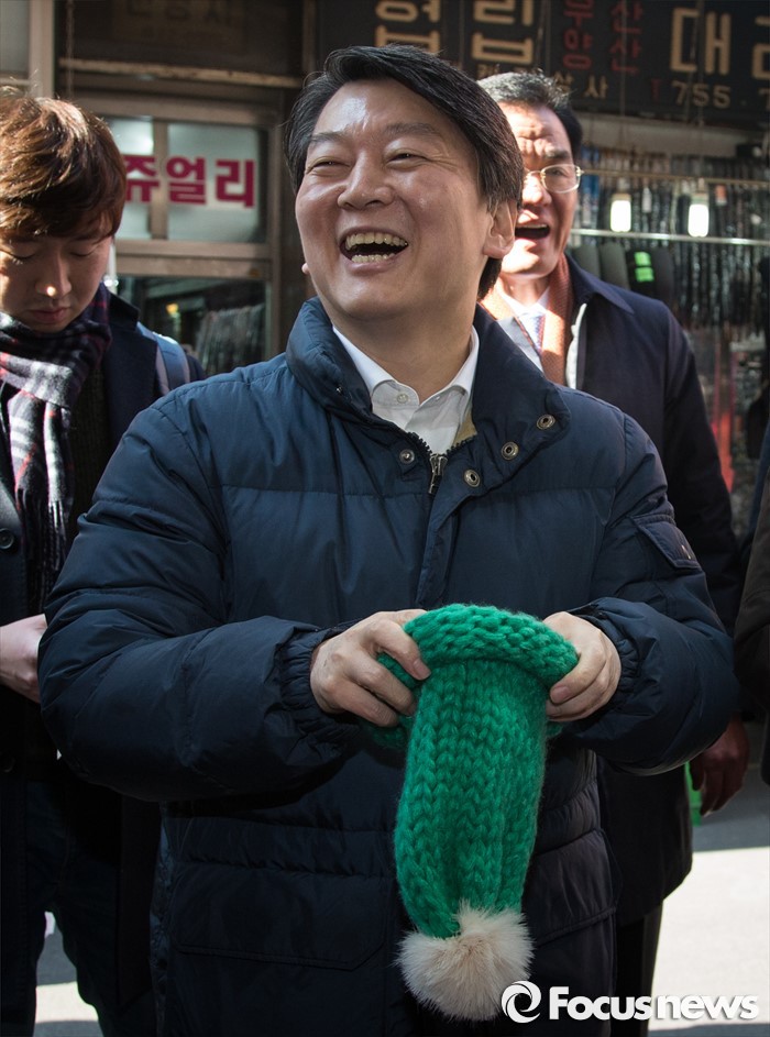 | △ 남대문시장에서 털모자를 든 안철수 |