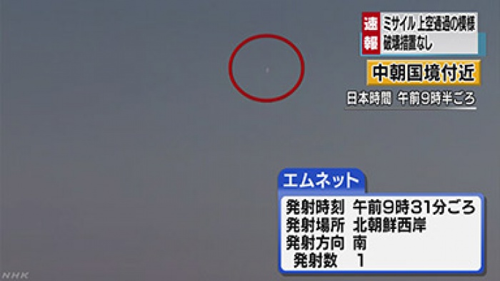 | △ 日 NHK, 북한 미사일 발사 장면 포착 |