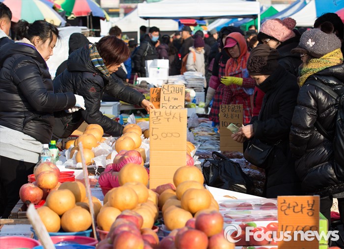 (서울=포커스뉴스) 설 명절을 앞두고 제수용품 및 선물용 식품 등을 구매하기 하는 사람들이 늘어나고 있다.