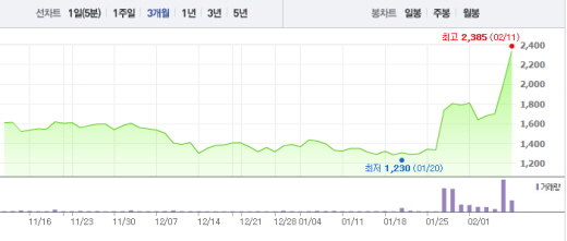 당기순이익이 흑자전환한 것에 대해 큐로컴 측은 대규모 파생상품평가이익이 발생했기 때문이라고 설명했다.주가흐름<사진출처=네이버 캡쳐>