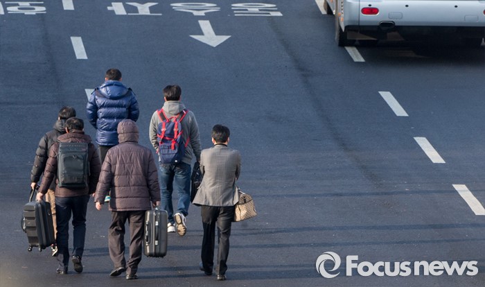 통일부 관계자는 "북한의 출입계획 동의로 개성공단 출·입경이 원활하게 이뤄지고 있다"고 전했다.11일 오전 경기 파주시 경의선 남북출입사무소에서 개성공단 입주기업 관계자들이 출경하고 있다. 2016.02.11 양지웅 기자