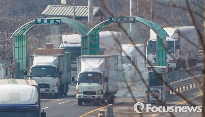 | △ 입경하는 개성공단 트럭들 |