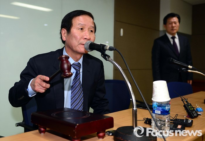 | △ 의사봉 두드리는 정기섭 개성공단기업협회장 |