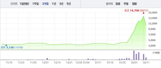투자경고종목 지정이후 주가가 2일간 40%이상 급등, 거래정지 상태까지 갔었던 유니더스는 12일 장 초반 20%를 넘는 하락폭을 기록하며 급락 중이다. 유니더스는 이날 오전 10시 46분 현재 전일 대비 23.16%(3150원) 떨어진 1만450원에 거래 중이다.
