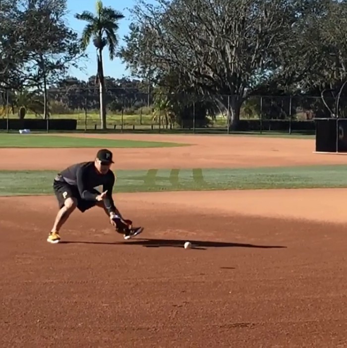 강정호는 13일(한국시간) 자신의 소셜네트워크서비스(SNS)에 수비 훈련 모습 영상을 게재했다. 강정호는 가벼운 훈련복 차림으로 그라운드에서 내야 땅볼을 포구하며 송구 동작까지 연결하는 모습을 선보였다. 정면으로 향하는 타구였고, 바운드도 평범했다. 공을 던지지는 않았다. 하지만 수차례 내야 땅볼을 받으며 수비훈련 감각을 찾아가는 상황임을 짐작케했다.