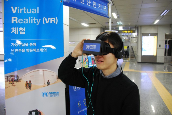 (서울=포커스뉴스) 유엔난민기구 한국대표부는 15일부터 요르단에 위치한 난민촌의 모습을 가상체험할 수 있는 헤드셋을 이용한 대면모금(face-to-face fundraising)을 시작한다고 밝혔다.