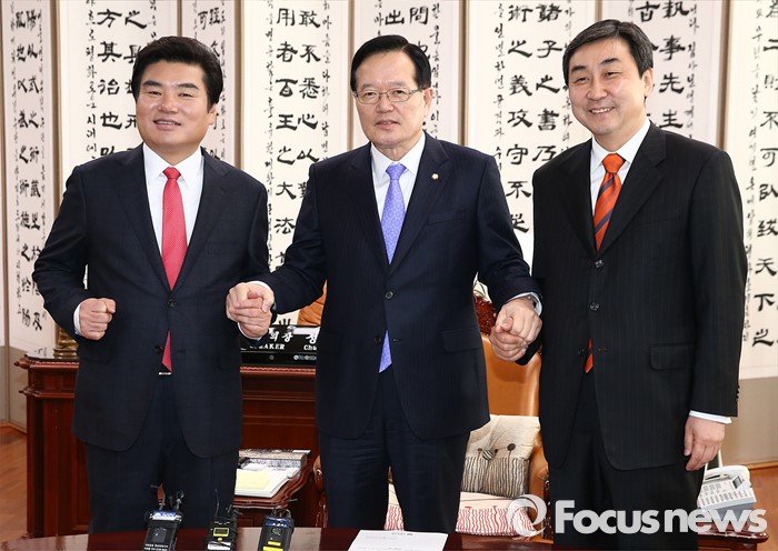 | △ 손 잡은 정의화·원유철·이종걸 |