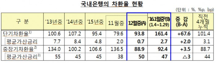 중장기차환율에 계산되는 평균가산금리도 12월 중 0.5%에서 0.47%로 낮아졌다.