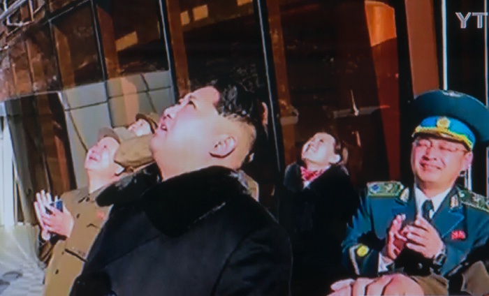 또한 "자강력의 기치를 만능의 보검으로 틀어쥐고 나아가는 백두산대국의 주체위성은 2월의 봄하늘가에 황홀한 비행운을 새겼다"고 말했다.북한 조선중앙TV가 7일 보도한광명성 4호의 발사장면뉴스에 김정은 국방위원회 제1위원장이 발사대 인근에서 하늘을 응시하는 장면이 나오고 있다..