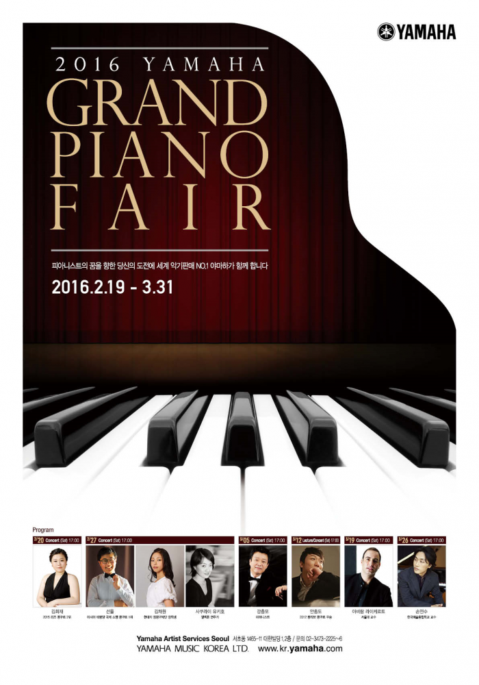 2016 야마하 그랜드피아노 콘서트에 관한 보다 자세한 사항은 야마하뮤직코리아 공식 홈페이지(http://kr.yamaha.com)를 참고하거나 야마하아티스트서비스서울(02-3473-2225)로 문의하면 된다.'야마하 그랜드피아노 콘서트' 포스터.<사진제공=야마하뮤직코리아>