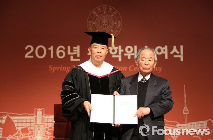 (서울=포커스뉴스) 18일 오전 11시 동국대학교 본관 중강당에서 열린 2016 봄 학위수여식에는 ‘특별한 손님’이 초대됐다.