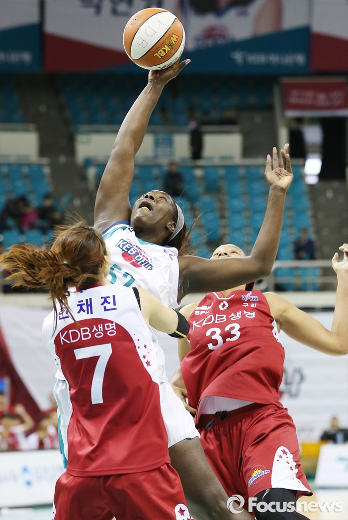 하지만 2쿼터는 졸전이었다. 양팀 모두 득점을 올리지 못하며 한자릿수 득점에 그쳤다. 양팀 합계 17득점에 불과했다. KEB하나은행은 잦은 공격자반칙으로 공격기회를 살리지 못했다. KDB생명은 여전히 상대 골밑을 파고들지 못하며 공격에 어려움이 컸다.