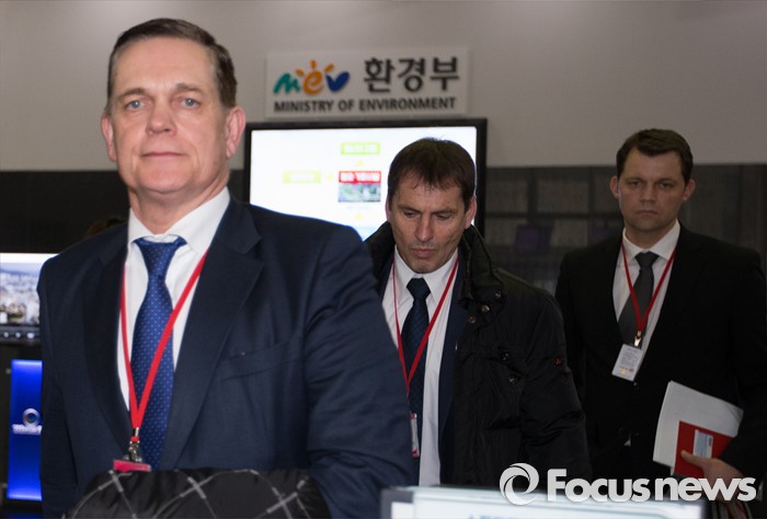 | △ 환경부 나서는 타머 사장과 아이히러 파워트레인 총괄책임자 |
