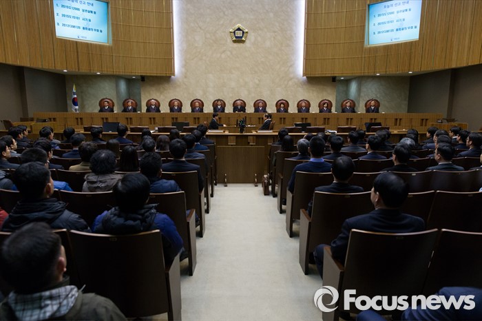 결국 대법원은 사건이 노동계에 미치는 영향을 고려해 이를 전원합의체에 부쳐 심리해왔다.양승태 대법원장과 대법관들이 19일 오후 서울 서초구 대법원에서 열린 전원합의체 재판을 위해 대법정에 앉아 있다. 2016.02.19 오장환 기자