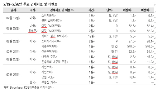 고 연구원은 “미국 소비자기대지수의 시장 컨센서스는 97.5로 전월(98.1) 대비 둔화될 것으로 예상한다”며 “2월 미시간 소비자신뢰지수가 90.7을 기록하며 예상치(92.3)를 하회했다는 점에서 소비자기대지수는 부진한 모습이 나타날 것”이라고 설명했다.