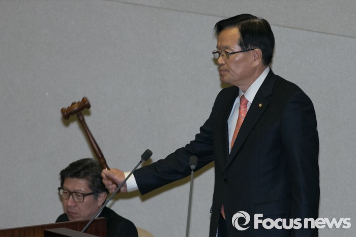 (서울=포커스뉴스) 정의화 의장이 23일 오후 서울 여의도 국회 본회의장에서 의사봉을 두드리고 있다.