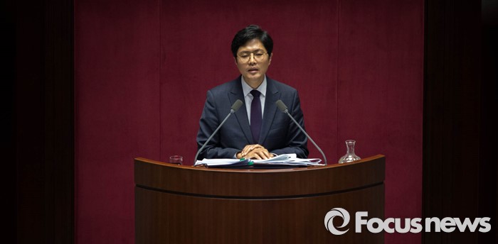 (서울=포커스뉴스) 23일 오후 서울 여의도 국회 본회의장에서 테러방지법 본회의 의결을 막기 위한 무제한 토론에서 더불어민주당 김광진 의원이 발언을 하고 있다.