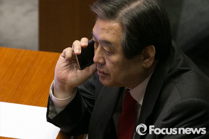 (서울=포커스뉴스) 김무성 새누리당 대표가 23일 오후 서울 여의도 국회 본회의장에서 테러방지법과 관련해 김광진 더민주 의원이 무제한 토론을 하는 동안, 전화통화하고 있다.
