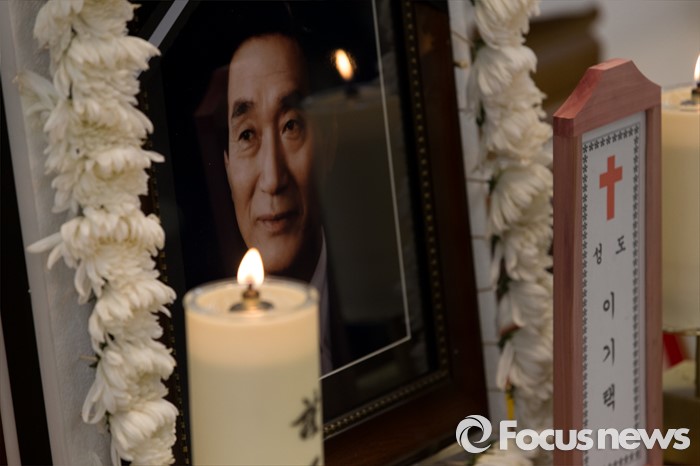 (서울=포커스뉴스) 24일 오전 서울 서초구 서울성모병원에서 故 이기택 전 민주당 총재의 발인 예배가 진행되고 있다.