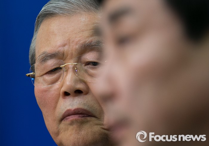 (서울=포커스뉴스) 김종인(왼쪽) 더불어민주당 비대위 대표가 24일 오전 서울 여의도 국회에서 열린 비상대책위원회의에 참석해 이종걸 원내대표의 발언을 듣고 있다.