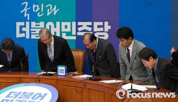 (서울=포커스뉴스) 김종인(왼쪽 두번째) 더불어민주당 비대위 대표가 24일 오전 서울 여의도 국회를 방문한 장휘국(왼쪽 세번째부터) 전국시도교육감협의회장, 이청연 인천시교육감, 조희연 서울시교육감과 간담회에 앞서 인사한 뒤 자리에 앉고 있다.