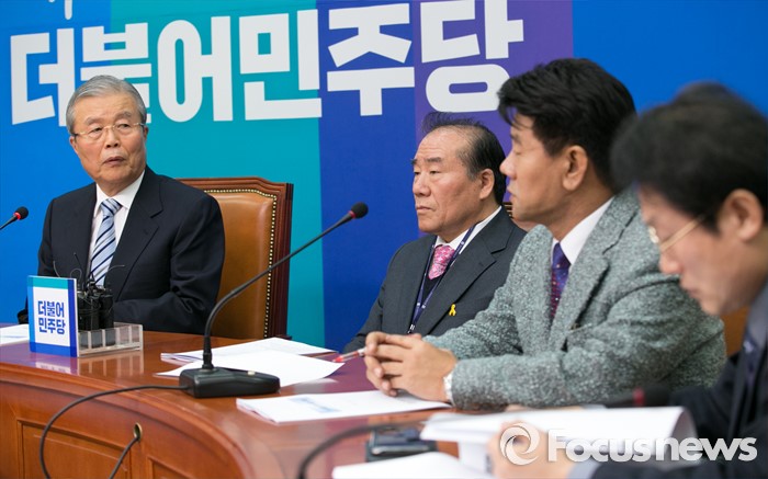 (서울=포커스뉴스) 김종인(왼쪽 첫번째) 더불어민주당 비대위 대표가 24일 오전 서울 여의도 국회를 방문한 장휘국(왼쪽 두번째부터) 전국시도교육감협의회장, 이청연 인천시교육감, 조희연 서울시교육감과 간담회를 하고 있다.