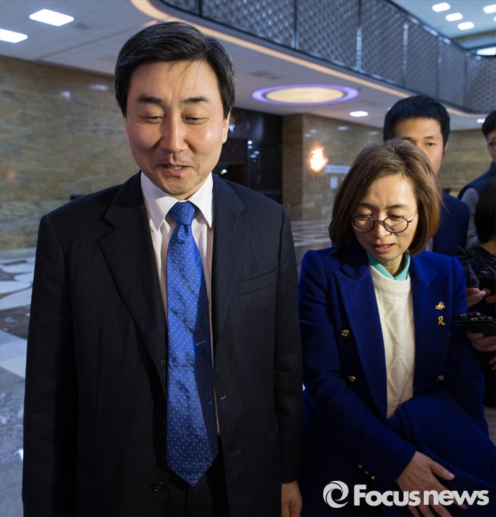 (서울=포커스뉴스) 24일 오후 서울 여의도 국회에서 테러방지법과 관련해 무제한 토론을 마친 은수미(오른쪽) 더불어민주당 의원이 이종걸 원내대표와 로텐더홀을 나서고 있다.