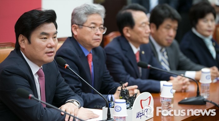 (서울=포커스뉴스) 테러방지법 직권상정에 반발해 야당의 무제한 토론(필리버스터)이 진행되고 있는 24일 오후 서울 여의도 국회에서 열린 새누리당 원내대표단-정보위원회 연석회의에 참석한 원유철(왼쪽 첫번째) 원내대표가 모두발언을 하고 있다.