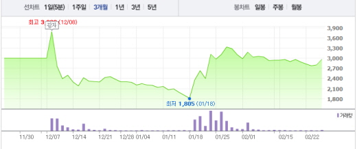 25일 오전 9시30분 현재 대한전선은 전일 대비 180원(6.24%) 오른 2980원에 거래되고 있다.