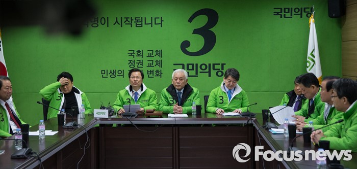 (서울=포커스뉴스) 국민의당 안철수 공동대표를 비롯한 지도부가 25일 오전 서울 마포 당사에서 열린 선거대책위원회에서 테러법 처리와 관련한 국회 상황과 관련해 회의하고 있다. 왼쪽 두 번째부터 김영환 공동선대위원장, 천정배 상임공동대표, 김한길 공동선대위원장, 안철수 상임공동대표