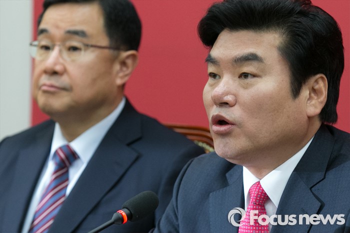 (서울=포커스뉴스) 원유철(오른쪽) 새누리당 원대대표가 25일 오전 서울 여의도 국회 집무실에서 테러방지법과 관련해, 특별 기자회견을 하고 있다.