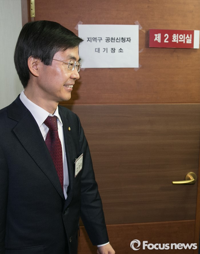 (서울=포커스뉴스) 25일 오전 서울 여의도 새누리당사에서 열린 20대 총선 공천 신청자 면접심사에 부산 사하을에 신청한 조경태 새누리당 의원이 참석하고 있다.
