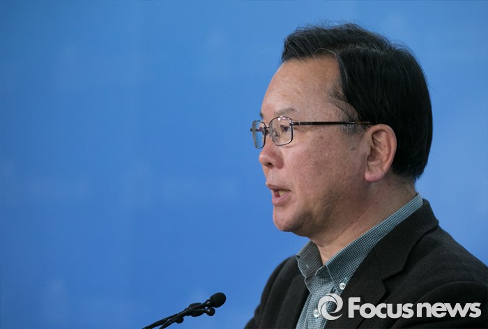 (서울=포커스뉴스) 김부겸 더불어민주당 대구 수성갑 예비후보가 25일 오후 서울 여의도 국회 정론관에서 컷오프에 반발해 탈당한 홍의락 의원에 대한 공천 배제 조치 취소를 요구하는 기자회견을 하고 있다. 홍 의원은 대구 북구을에 출마를 준비해왔다.