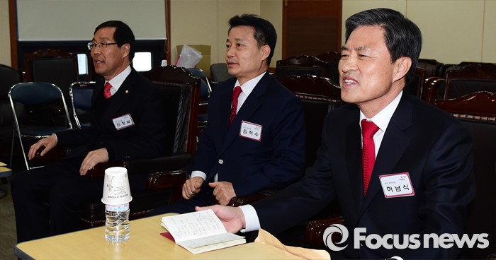 (서울=포커스뉴스) 25일 오전 서울 여의도 새누리당사에서 열린 20대 총선 공천 신청자 면접심사에 참석한 김장실(왼쪽부터), 김척수, 허남식 부산 사하갑 예비후보가 공관위원들의 질문에 답하고 있다.