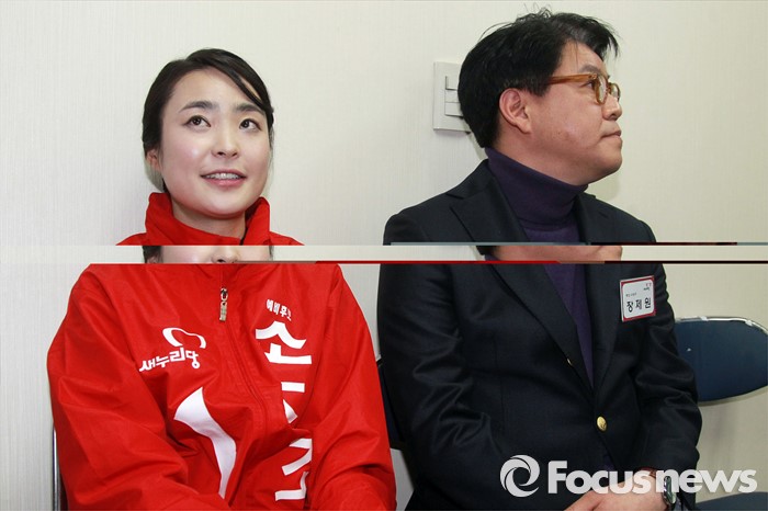 (서울=포커스뉴스) 25일 오전 서울 여의도 새누리당사에서 열린 20대 총선 공천 신청자 면접심사에 참석한 손수조(왼쪽), 장제원 부산 사상구 예비후보가 면접을 기다리고 있다.