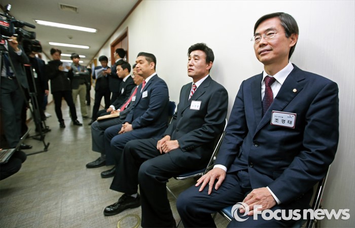 | △ 새누리당 면접 기다리는 조경태 |