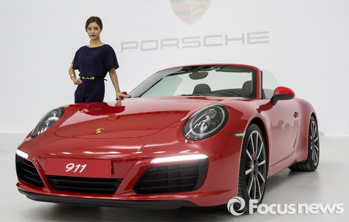 (서울=포커스뉴스) 25일 오전 서울 중구 동대문디지털플라자에서 모델이 포르쉐 신형 911 카레라S를 선보이고 있다.