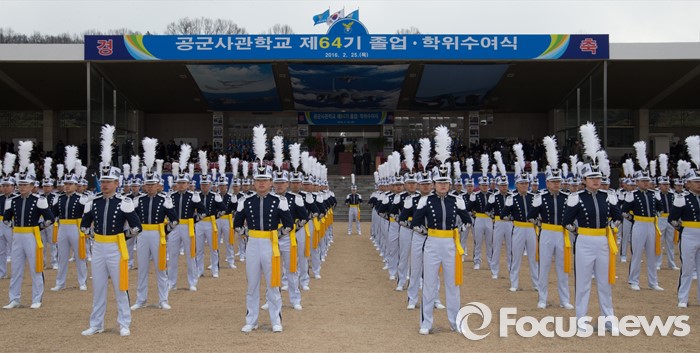 (청주=포커스뉴스) 25일 오후 충북 청주시 공군사관학교 연병장에서 열린 제64기 공군사관학교 졸업식에서 졸업생도들이 도열해 있다.