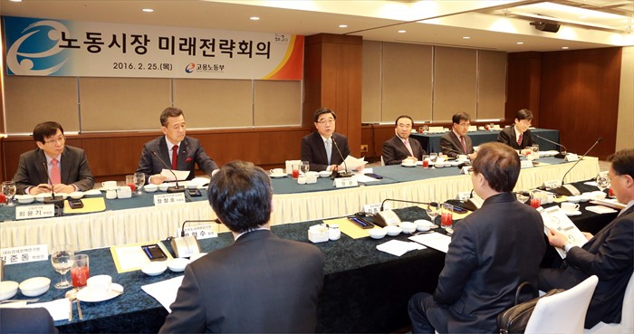 (서울=포커스뉴스) 이기권 고용노동부 장관이 25일 오전 서울 중구 은행연합회관에서 열린 '노동시장 미래전략회의'에 참석, 우리나라 노동시장의 지형과 과제 및 청년고용 문제, 저성장․구조조정기의 고용정책 등을 논의 하고 있다. 이날 회의에는 한국개발연구원(KDI), 노동연구원, 산업연구원, 보건사회연구원, 조세재정연구원, 금융연구원, 한국고용정보원, 직업능력개발원 등이 참석했다. <사진제공=고용노동부>