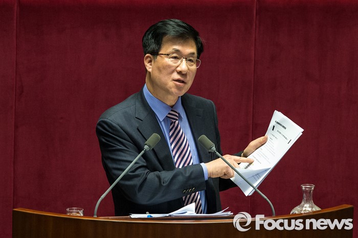 (서울=포커스뉴스) 테러방지법 직권상정에 반발해 야당의 무제한 토론(필리버스터)이 사흘째 진행되고 있는 25일 오후 서울 영등포구 국회 본회의장에서 신경민 더불어민주당 의원이 새누리당 총선 공약에 대해 발언 하고 있다.