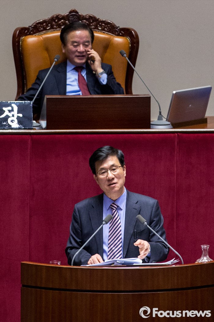 (서울=포커스뉴스) 테러방지법 직권상정에 반발해 야당의 무제한 토론(필리버스터)이 사흘째 진행되고 있는 25일 오후 서울 영등포구 국회 본회의장에서 신경민 더불어민주당 의원이 발언을 하고 있다.