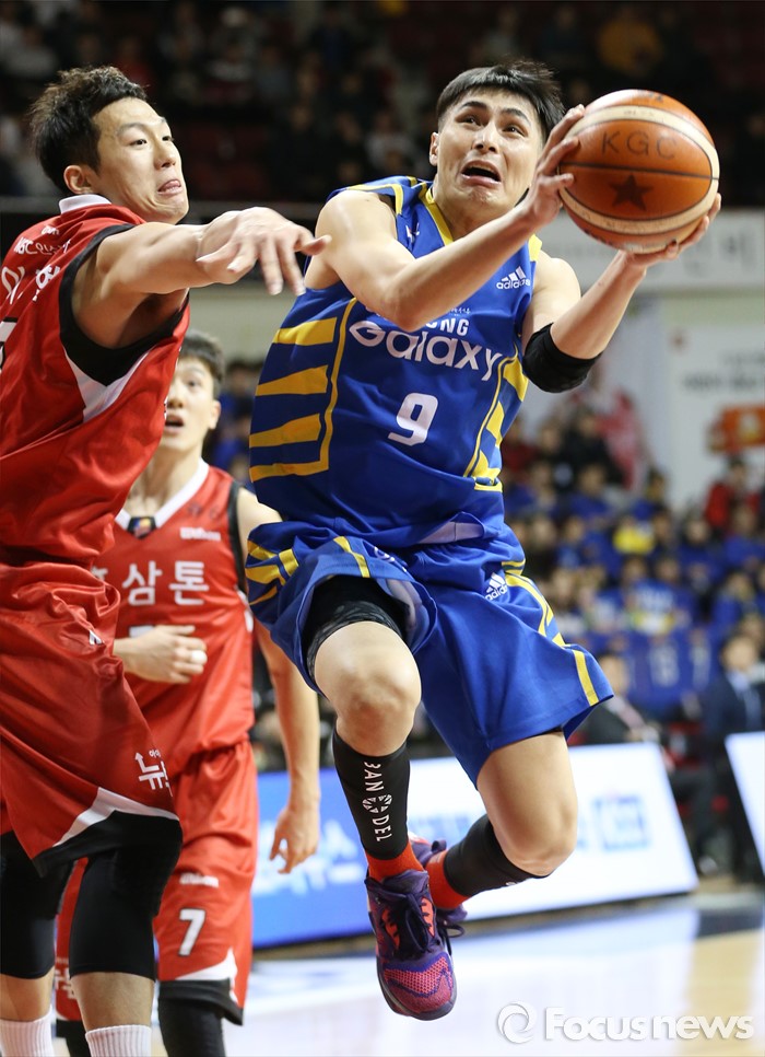 (안양=포커스뉴스) 25일 안양실내체육관에서 열린 2015-2016 프로농구 6강 플레이오프 KGC-삼성 1차전에서 삼성 주희정이 KGC 이정현의 마크를 뚫고 레이업슛을 시도하고 있다.