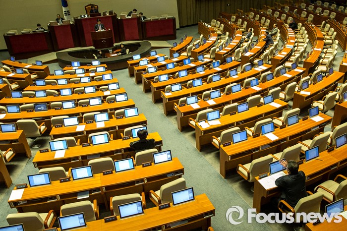 (서울=포커스뉴스) 테러방지법 직권상정에 반발해 야당의 무제한 토론(필리버스터)이 사흘째 진행되고 있는 25일 오후 서울 영등포구 국회 본회의장에서 신경민 더불어민주당 의원이 본인의 저서인 '국정원을 말한다'를 보이며 발언을 이어가자 조원진(오른쪽) 새누리당 의원이 '선거법 위반'이라며 이의 제기를 하고 있다.