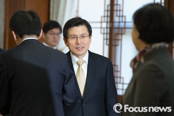 (서울=포커스뉴스) 황교안 국무총리가 26일 오전 서울 종로구 정부서울청사에서 열린 제8차 국민안전 민관합동회의에서 모두발언 전 관계부 장관들과 인사하고 있다.